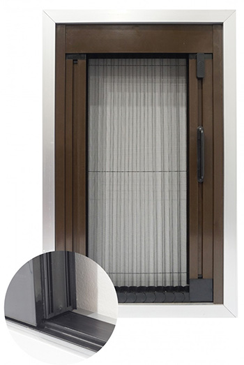 The Trackless Pleated Retractable Flyscreen is a completely barrier-free screen, allowing easier access for vacuum machines, prams, wheelchairs and bikes. With only a thin plate for fixing the frameless door still.