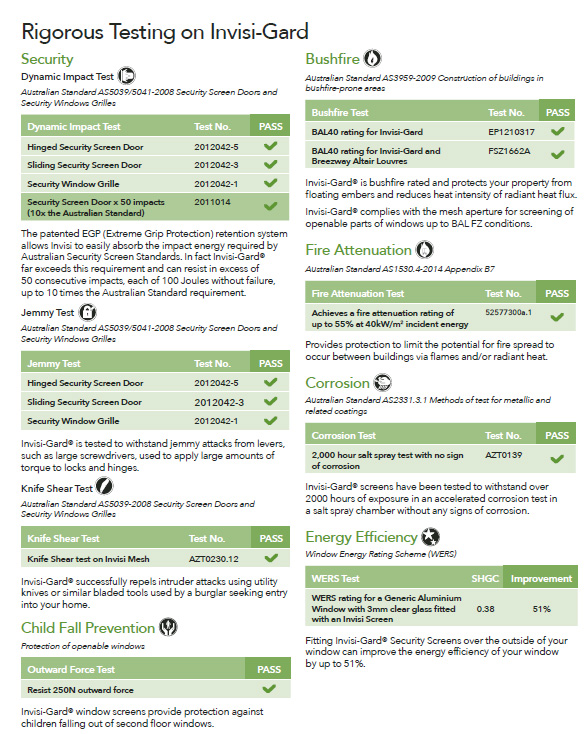 - All Invisi-Gard® hinged and sliding security doors are fitted with three point locks for added security from the reliable Australian manufacturers Austral Lock or Lockwood.All Invisi-Gard® Hinged & Sliding Security Doors have been tested to Australian Standards AS5039-2008 so you can be assured that when choosing Invisi-Gard®, you are choosing the finest in Stainless Steel Security Products.
